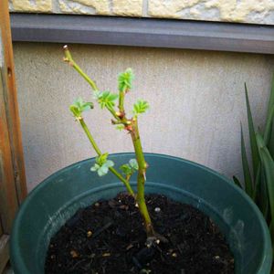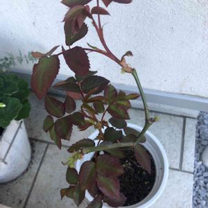 バラ シェエラザード。 母に頼まれて、 バックアップのために挿し木しています。 挿し木したのは11月ごろだったはずなんだけど、もう蕾がついてる〜(⌒-⌒; ) 大きくなって欲しいので 摘蕾しました(^^)