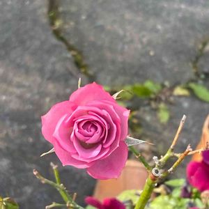 昨年、強風で折れてしまったバラを挿し木にして室内で育てていました🏡 今日小さな花が咲きました🎶 本当はまだまだ株が未熟なので、咲かせるのは可哀想ですが💦 どんなバラだったか思い出せず、つい咲かせてしまった😅 せっかくですから、雪の上で記念撮影❄️ この後は切り花にして、株を休ませます💤