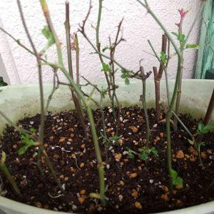 ぜーんぜん咲かない挿し木の薔薇。 動き出しました。期待してしまうけど気長に気長に。
