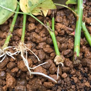 一か月前に挿木開始したモニークダーブの発根が確認できたので、ポット上げしました。しっかりした太くて白い根っこです☺️💕