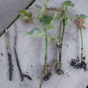 バラの挿し木 →根もしっかりついて植え替え時❣️👏⤴️⤴️ ←失敗作、挿したところが黒くなって枯れてしまいました💔 成功した枝は花壇に植えました💕 どんな🌹が咲くかお楽しみです🎵