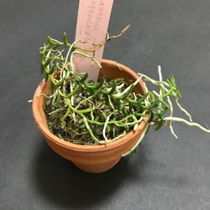 やっと7月に突入。📷を撮った記憶すらなかったけど、一応撮ってたのね。7月30日撮影。 2018年は7月25日にポストしているので、ほぼ同時期の開花ですね。 ムカデラン(Pelatantheria scolopendrifolia)は日本の蘭で耐寒性も高く、うちの気候は分布域と遜色ないので、通年屋外放置でもやっていけると思うのですが、広島県に分布してないのが気になるのと、丈夫ではあるけど成長量が少なくダメージを受けると回復に時間がかかりそうなので、毎年踏み切れずにいます。大寒の頃から今時分までは室内です。
