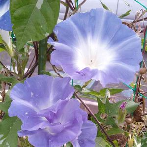 おはようございます🎵 8/23日曜日☁ アサガオ(朝顔)💜💙✨ 19日と同じ花です ホンワリ優しい色の花が まだ元気に咲いていたので💓 やっぱり癒やされるな〜🎵💛 夏の花もそろそろ終わり さびしいね・・・ ☺️ちゅんも夏休み終わりです💦