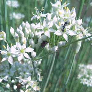 こんばんは🌃 ニラの花🍀✨ ユリ科🌸 長い茎の先に白い花を沢山咲かせ可愛い💓 アリさん🐜食事中😊 葉っぱは食べられる🎵 ビタミンÀとカロチンを多く含み消火を助けるそうでした✌️