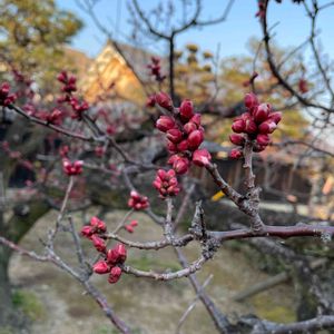 紅梅のつぼみかなあ? 陽当たりの関係か?この木の開花は遅めやなあ☺️