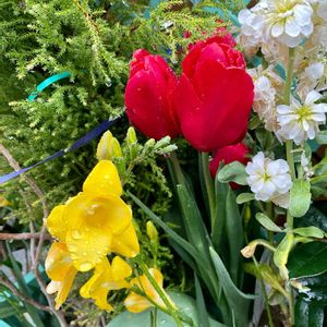 テレワークを終えてお散歩に出た🚶♀️ 赤いチューリップ🌷を見つけた☺️