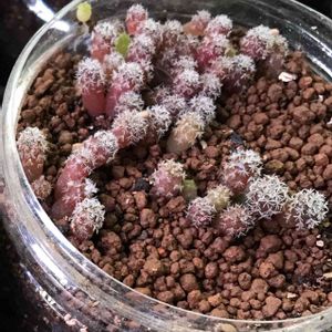 この子も見てほしいです。 アリオカルプス属実生です。 色が赤いのですが正常なのでしょうか?もしご存知の方いらっしゃいましたら教えていただければと思います😥