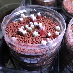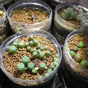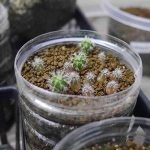 ハオルチア 実生です、カクタスニシのHPを見て密閉で育てています。 昨年10月頃播種で今こんな感じです。 バーミキュライト単で水分のみですがこのまま育つのか心配しています。開けるのも怖いし、どうしたらいいのか 待つべきか、何かした方がいいのか誰か教えていただけませんか?よろしければ