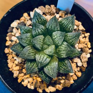 お気に入りハオルチア... ウィミー交配「銀の惑星」🪐 ゆっくり成長中...🪴 締まって良い株に育って欲しいなー🤔