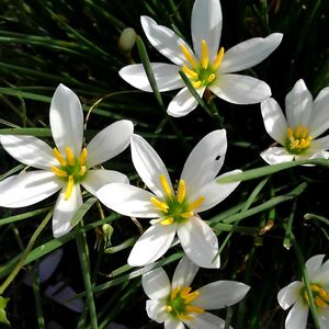🍀🌻🪴💐🌹🌻🍀 🍀🤍タマスダレ🤍🍀 💐タマスダレの花言葉は(純白な愛) (期待)です 💐タマスダレはヒガンバナ科 タマ スダレ属(ゼフィランサス属)の多 年草(球根植物)の植物で原産地 南 はアメリカ、ペルー、メキシコな どです 💐開花期は8月~10月頃花色は白、 別名は レインリリー、ゼフィラ ンサス、球根や植物全体に毒性 (リコリンなど)があります 💐草丈は15~30cmほどで、細い葉 がニラに似ています 💐名前の由来は純白の可憐な花を(玉) に、細長く集まった葉を簾(すだれ) に見立てたことから名付けられまし た、英名のレインリリー(雨のユリ) 乾燥した後に雨が降ると一斉に花が 咲く性質があるため、英名で(レイ ンリリー)と呼ばれています 🍀🌻🪴💐🌹🌻🍀