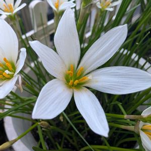 今日のお花 💮タマスダレ💮 ヒガンバナ科タマスダレ属 和名「タマスダレ(玉簾)」 別名「レインリリー(雨ユリ)」 「四季水仙(シキズイセン)」 「ゼフィランサス」 花言葉「純白な愛」「期待」 カーポート下にて 25.10.08