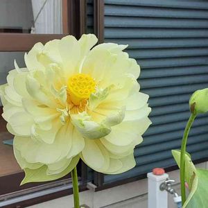 縁側の前の蓮鉢に植えてある黄色の蓮、昨日迄はつぼみでしたが、今朝開花しました。