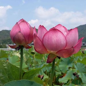 夏空に映える蓮の花 見ているだけで元気に なりそうです。💞