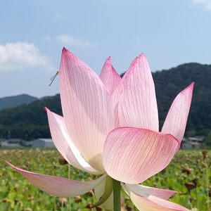 蜻蛉 蓮 左の大きめの花びらに蜻蛉が留まっていたんです 後から気づきました ヤマサ蒲鉾の蓮苑の蓮を続投します