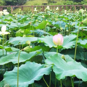 あいち健康の森で 蓮は例年の半分に ピンクの方がほぼ無くなっています