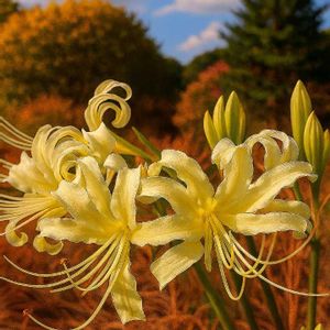 【季節の花華シリーズ:曼珠沙華;彼岸花】 ♧ヒガンバナ:白色彼岸花;White Spider Lily :白い曼珠沙華 《一歌献上》 「秋の野に 彼岸花咲き 癒されし」 @訳意;The white spider lily blooming in the autumn fields are soothing. ; 秋の野に咲く白い曼珠沙華;彼岸花は心を和ませてくれます。 ✍️Works;Poetaster Kazyan Doe.,/;筍歌人;藪中和堂 🖼️Artistic;White spider lily /;Kazyan’s Collection October 15,2025:past am 06:00’;upload by Kazyan’s Green Studio
