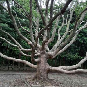 森の精の様な💞くすの木。 こんな異様な枝ぶりのクスノキが何本も見られました。帰りに、妖精に扮した女子達が木に腰掛けていました。ファンタジック~🎠 このクスノキ、緑の葉が出ていて、ちゃんと生きてます!