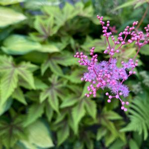 ピンクのフィリペンデュラです。 白い花のフィリペンデュラとは 形が違うので同じ種類だとは思いませんでした。 今朝名前を調べてやっと気づきました。 もう植えてから3年以上経つのにね。😅
