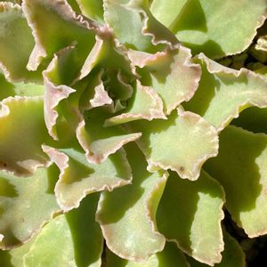 【エケベリア属 シャビアナ ペレグリナ】 Echeveria shaviana Peregrina シャビアナ ペレグリーナ タグは【シャビアナ ペレグリナ】🏷 ペレグリナ原産の実生苗から フリルの強い個体を選抜し、 それを色別に 【シャビアナ グリーン フリル】や 【シャビアナ ベージュ フリル】と 呼ぶらしいです 別で掻いた子株は、 購入当初のグリーンのまま 親株のこちらは断水してたら、 ピンクベージュに色付いてました 「原産地 メキシコ(Peregrina) ペレグリナ原産の実生苗からでた、よりグリーンの葉のもの エッジは白く透き通っていて、冬になると少しだけ紅葉」 ☆Source☆ 【羽兼直行】さんの著書