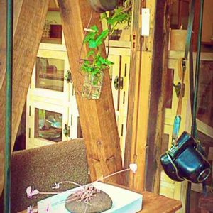 お昼休み、近所のお気に入り古民家カフェでランチ🍴 古道具の滑車にグリーンを吊るすアイディア👍