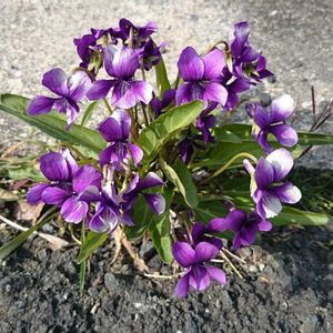 今日のお花さんは、『スミレ』。 春先になると咲きだしますね。 駐車場の砂利道やコンクリートのすき間や道端やら 我が家の庭でもいろんなところからスミレが出現します。 写真のスミレは、家の前の道端で毎年咲いているヤツです。 (ФωФ)道端…スミレ… 注)道端三姉妹とは関係ありません。