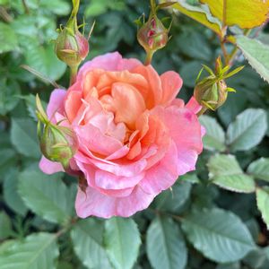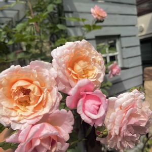 おはよーございます😊✨ 薔薇🌹【ピエール・エルメ】 アンドレエヴの薔薇🌹 フランス菓子🇫🇷の巨匠あのマカロンで有名なピエールエルメの名に相応しいピンクにアプリコットが入った可憐な🌹 こちらは株分けして頂いたのがかなり大きくなりました(^^) 今年は見事に咲いてくれましたよ🌹