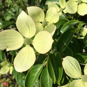 常緑ヤマボウシ 咲き始めのこのグリーンがかった色合いが、とってもステキで好きです(*´ω`*) 毎年一面に花を咲かせてくれて、すごく嬉しいです♪