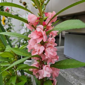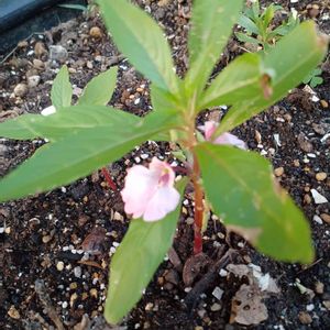 ホウセンカ 花言葉 心を開く 種を飛ばす際に実がはじける様子から つけられたようです🌸 初めての種蒔きホウセンカの 第一花はピンク🩷♬ 🏷️金曜日の蕾たち