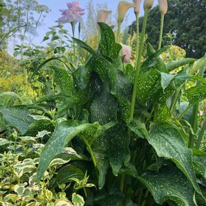 花菖蒲の花芽が沢山上がってきました😊💕 カラーも、もう直ぐ咲きそうです 斑入りは、カリガネソウです 医療従事者及びコロナと闘っている方々に感謝👏