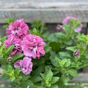 矢車菊、花盛り ペチュニア 一回✂️して また、花がこんもり 2種類です。