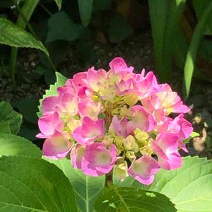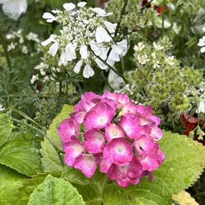 アジサイ ピーチ姫🍑 今年は赤いアジサイ用肥料をやったので、ハッキリしたピンク色になった💖 花が小さい😅