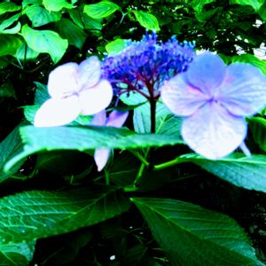 朝の散策の通り道のお宅の花壇に、ガクアジサイが、未だ✨✊😜