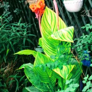 買い物帰りに、通り道のお宅の花壇に、 カンナベンガルタイガーの、花が咲いてました。