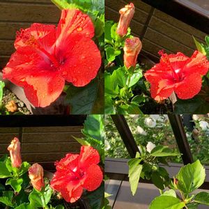 ショッピングモールで 見つけたハイビスカスさん✨ まだまだ蕾ちゃんたくさん付いてるのに 半額✨ 綺麗だったのでお迎えしました 🏷真っ赤な火曜日 🏷あっ火曜日