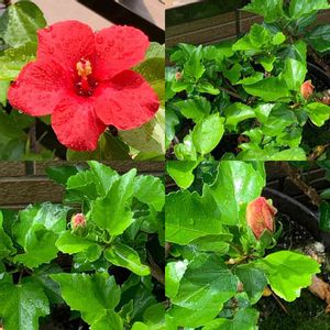 2年間で成長著しいハイビスカス🌺😆 前picのハイビスカスは頂いた時、右下のような小さな鉢植えでした。昨年はソファーの高さを越えるほど背が高くなったので、今年の春先に3分の2くらいの大きさにカットしたのですが、今度は横にも縦にも成長して現在はご覧の通り垣根のようになっています。蕾も10個くらいあり、ポツポツと咲きはじめて嬉しいのですが、今後どう仕立てていくか楽しいお悩みです😆