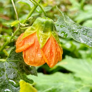 雨の日 オレンジ色のアブチロン「プチパニエ」一輪だけ咲いてました。