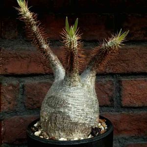 パキポディウム グラキリス 今年は暖冬のせいかまだこれだけ葉っぱ残したまま3月に突入。 ほとんど水やってないけどソロソロ注水開始かな。
