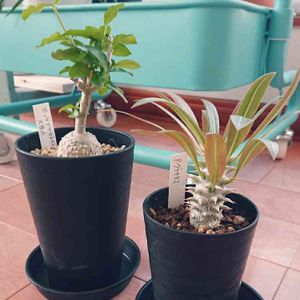 昨日、園芸店で購入したパキポディウム・グラキリスとフォッケアエデュリス(火星人)です🎵 (火星人)って名前…すごいなぁ😁