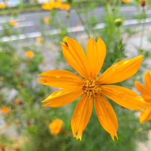 💛キバナコスモス🧡 今が盛り👏👏 道路沿い満開です🌿💚💛 花びらの造形が素晴らしい☘🧡💛