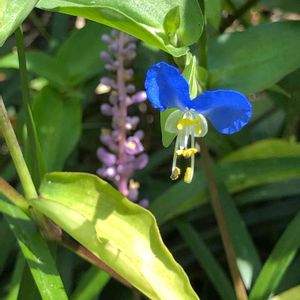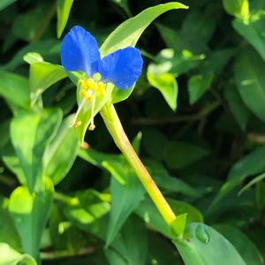2020.7.12(日) ツユクサ 🍀葉っぱは、ずっと前からお目見えしてたのだけど、やっと花があらわれました。 今の時期から、いつまで咲いてくれるのかな⁉️秋まで咲いてくれたら、嬉しい😊です。 ☔️朝露が、降りていたらもっと雰囲気がよかったのだけど… あいにく、雨が止んで時間が経って曇ってたので、つゆはなし。残念💦 😅