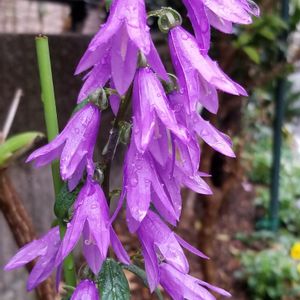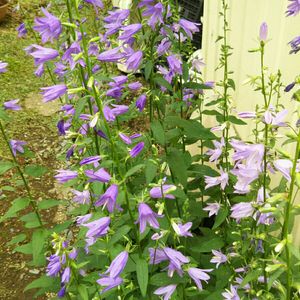 朝鮮や中国原産のキキョウ科の植物。日本には中国より渡来したらしく、 トウシャジン(唐沙参)の名がある。シャジンというのはキキョウ科のこの 仲間のことを指す。花はふくらみのある釣鐘型で、きれいな青紫色をしている。 良く通る家の花壇に咲いていました。