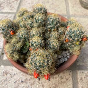 サボテンの銀手毬に、 赤い実が付きました😊 小さな可愛い実です。 植えればサボテンになるのかなぁ⁉️
