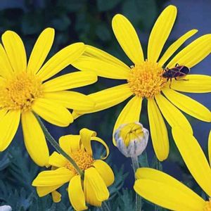 我が家のマーガレットコスモス🌸🌿 カメラを向けたら ちっさい虫くんがお食事中でした🐝 このコスモスは バラの根本に植えてあるんですが バラが落ち着いた今の時期のが誇らしげに咲いています🎵