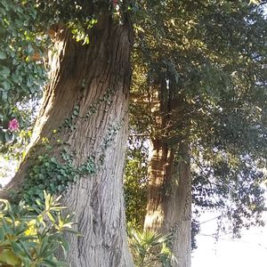 境内にある樹齢1000年の双樹の榧(カヤ)の木_。 巨樹の榧の木を見上げていたら、ふと、幹の下部の辺りに後ろ姿の女の子が榧の木に抱きついているように見えました❣️ 榧といえば、碁盤や将棋盤の最高級品としても有名ですね🌲✨ 中国に4種、アメリカに2種、日本に1種と、世界には7種の榧があるようです🌍✨