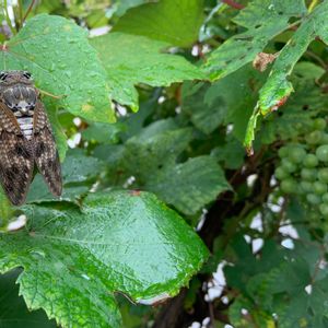 7/31 🏡自宅にて。 🍇ほったらかしデラウェア🍇の葉の上でセミが雨宿りをしていました🤗。
