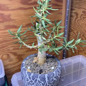 パキポディウム・ビスピノーサム 2021年8月14日 メデルさんで購入 他とは葉っぱが違っていて面白い。