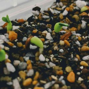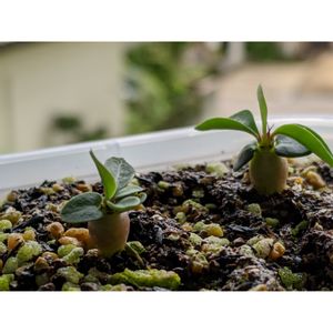 ■パキポディウム・ビスピノーサム 一週間前に播種したもの。 梅雨のせいもあり、発芽率は50%ぐらい。 頑張って育てて、1年ぐらい経ったら成長記録を投稿できれば と思ってます!