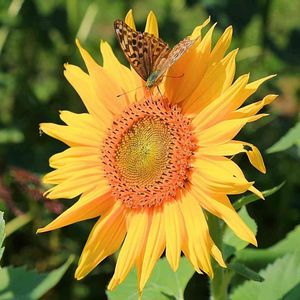 ひまわりの花に蝶々がいました。