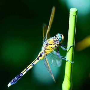 とんぼが羽根を休めていました。 このトンボのメガネは水色でした。