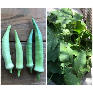 10/6に採れた 白オクラ1つ、島オクラ2つ✨ オクラはその形から "Lady’s finger" とも言われるそうです☝ ́͏̖- 拡大するとうぶ毛まで見えます👀 ́͏̖-
